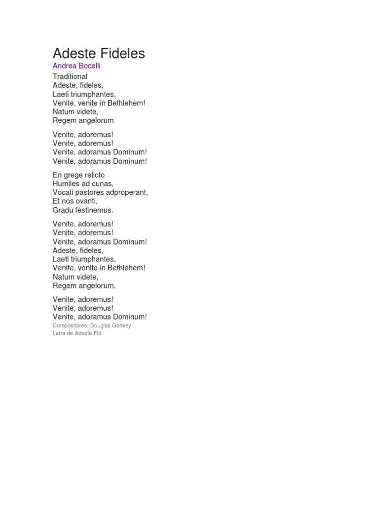 Adeste Fideles Letra Espa?Ol : Adeste fideles, versio coro marmolada. Adeste Fideles Letra Espa?Ol / This is a transposed edition in g dur of the original edition in a dur.