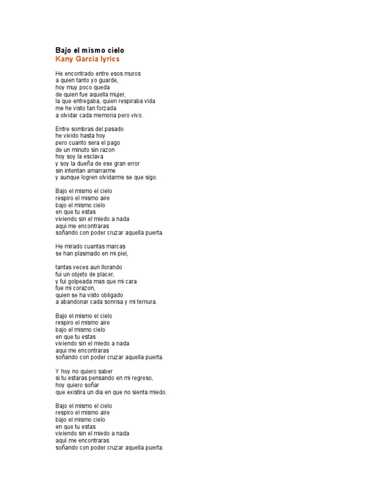 Bajo El Mismo Cielo Kany Garcia Doc - La letra de bajo el mismo cielo en espanol es interpretada por los pericos son propiedad y copyright de sus autores, artists y discograficas.