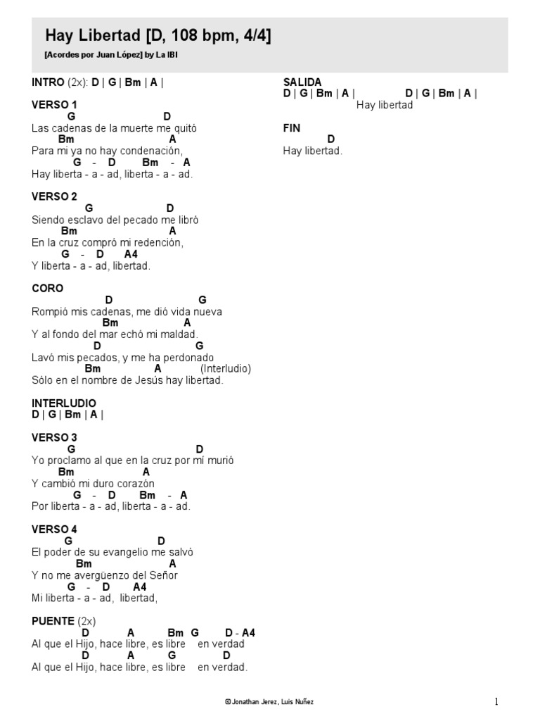 Hay Libertad La Ibi Acordes / 9,529 views, added to favorites 49 times. Hay Libertad La Ibi Acordes : En la cruz compro mi redencion, c g d y libertad, libertad.