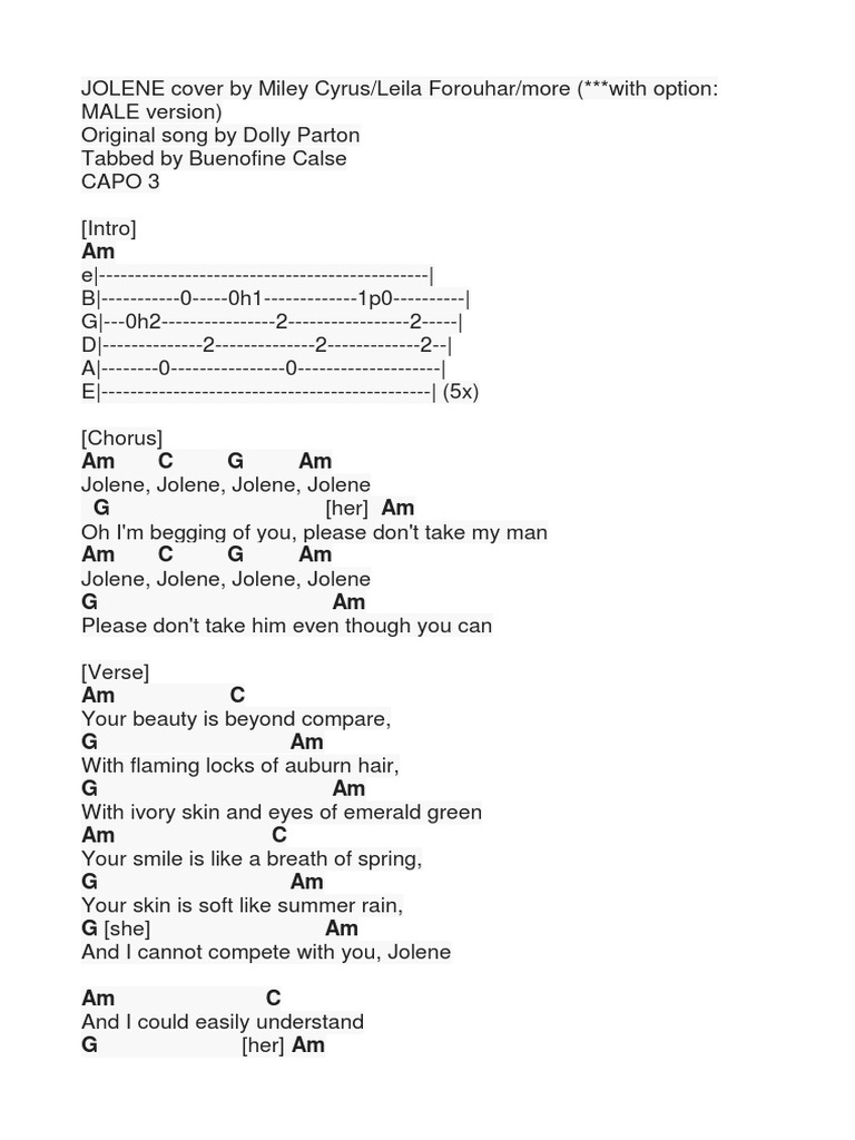 Jolene Uke Chords / Based on the miley cyrus version. Jolene Uke Chords - Jolene uke tab by dolly parton.