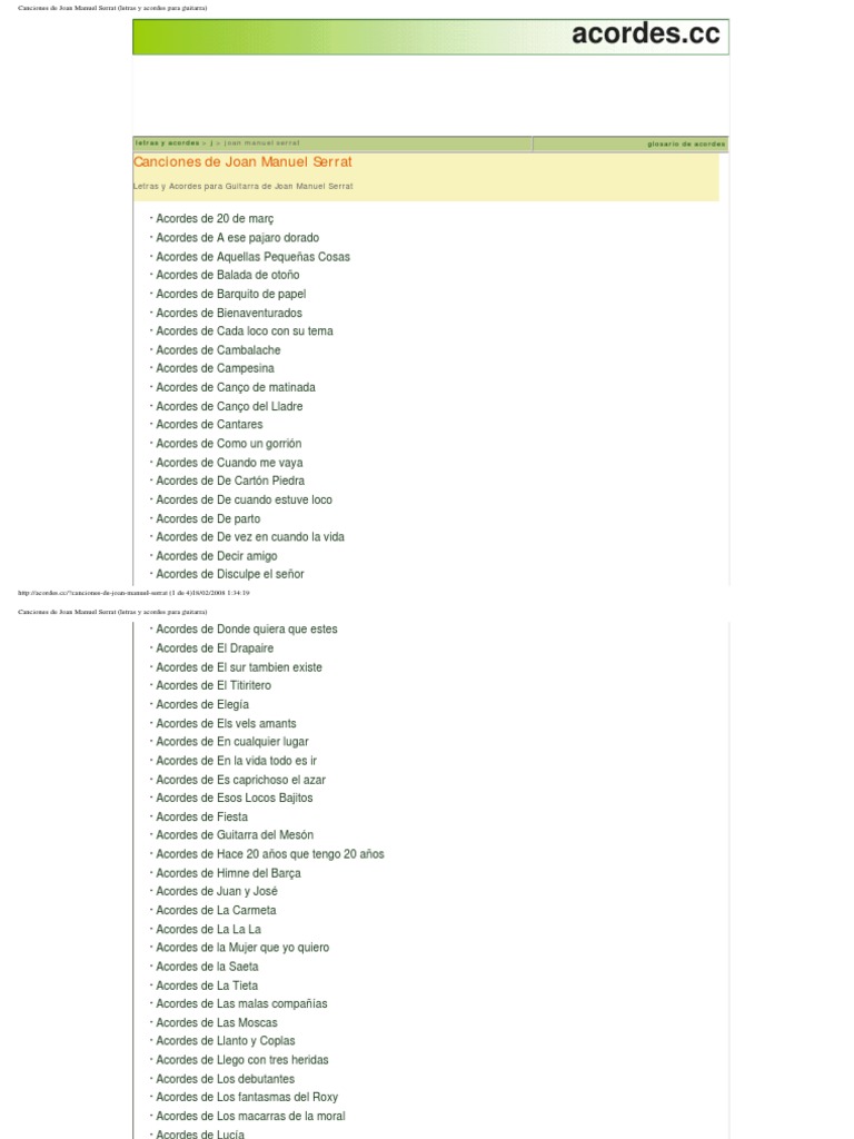 Canciones De Joan Manuel Serrat Letras Y Acordes Para Guitarra Pdf Entretenimiento General - La quiero a morir), es una cancion escrita por francis cabrel.