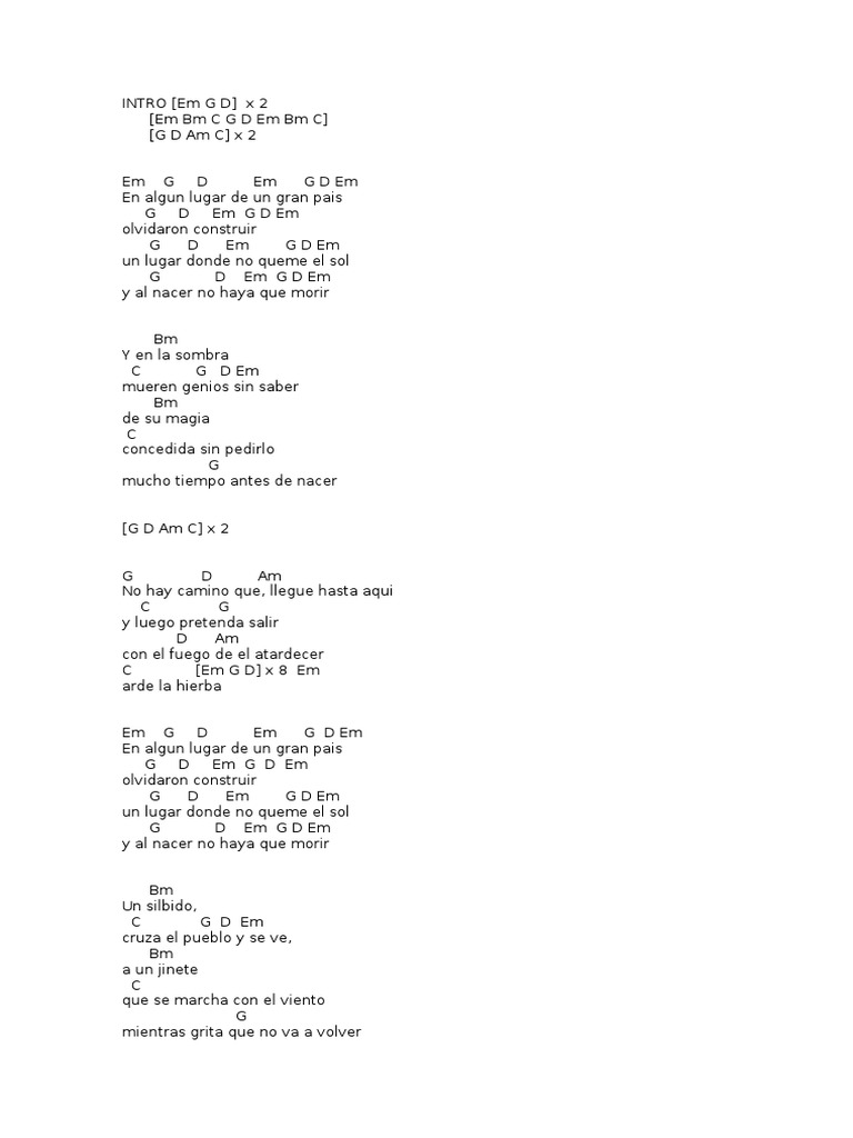 En Algun Lugar Chords - Me muero por ti oe oh em c.