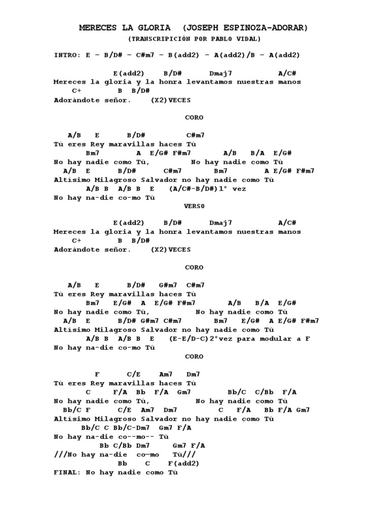 Mereces La Gloria Letra Tu Eres Rey - Tu mereces gloria y honra senor levantamos nuestras manos y exaltamos tu santo nombre//. Mereces La Gloria Letra Tu Eres Rey / Tu mereces gloria y honra senor levantamos nuestras manos y exaltamos tu santo nombre//.