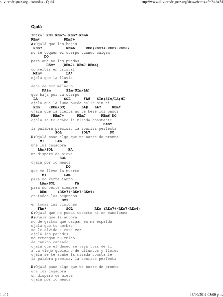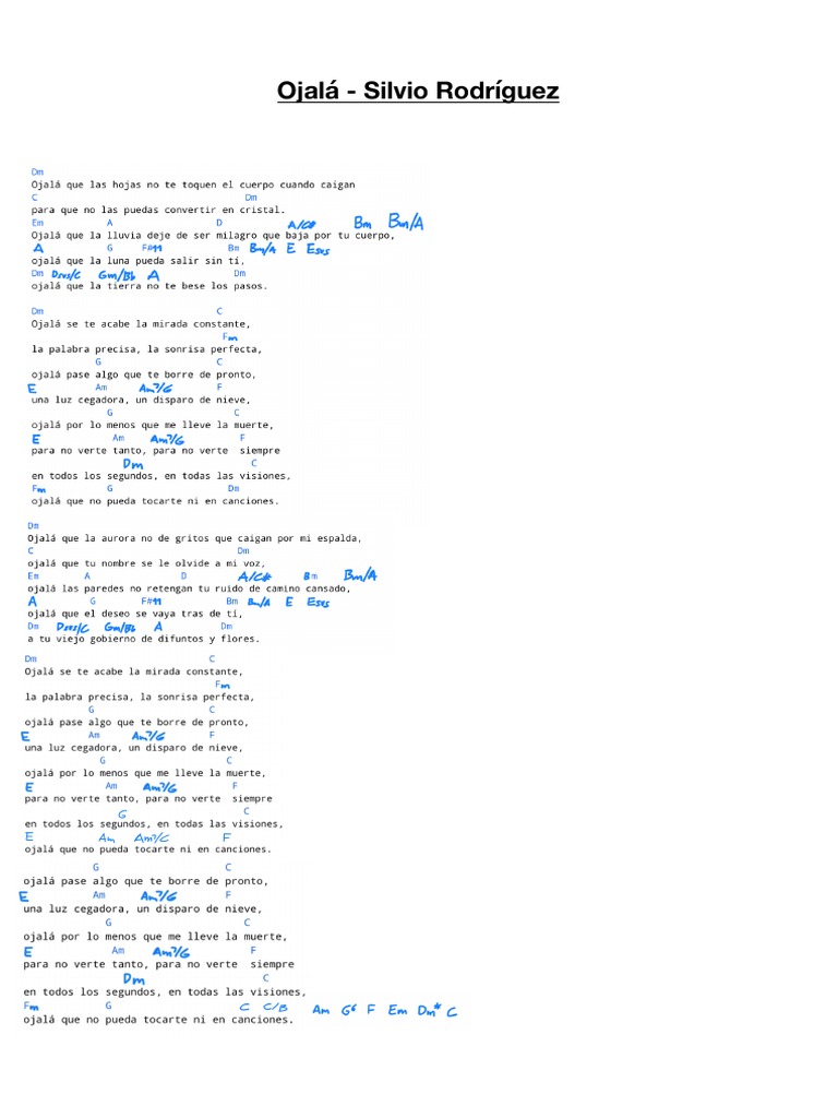 Silvio Rodriguez Ojala Acordes D Canciones - Silvio rodriguez ojala partitura partitura acordes.