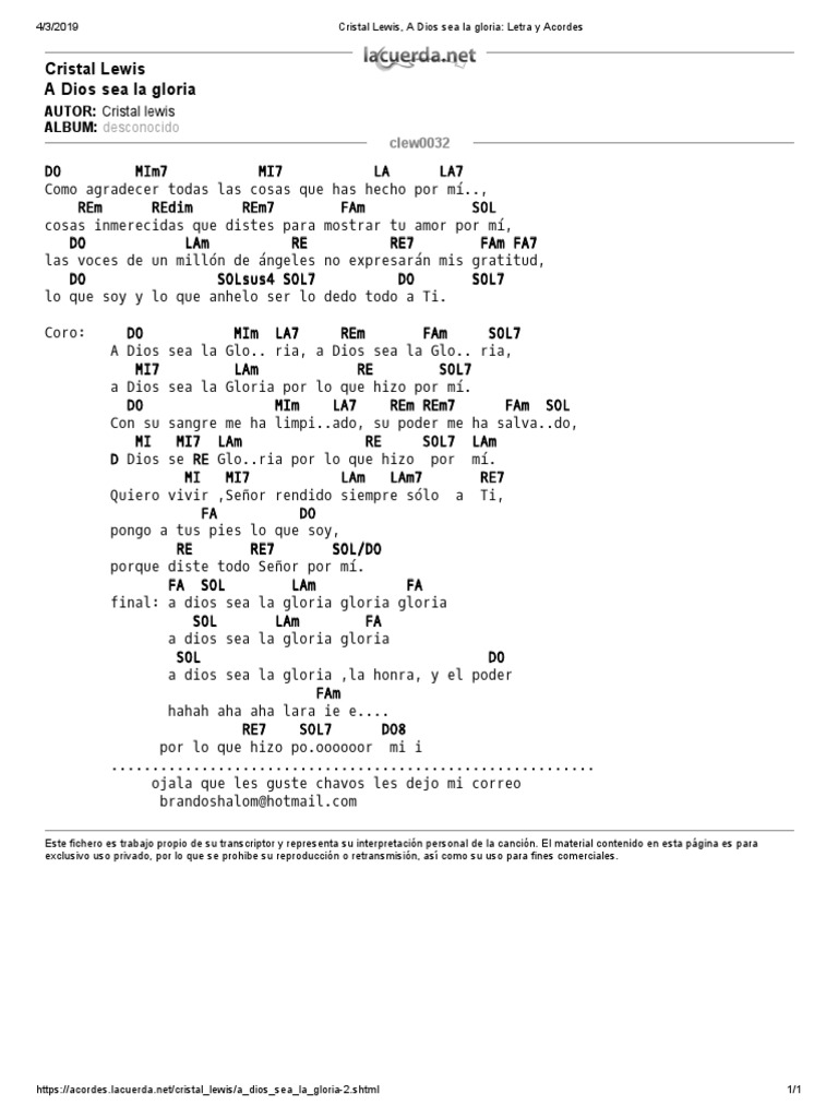 Cristal Lewis A Dios Sea La Gloria Letra Y Acordes Musica Grabada Musica Pop - G c d g ojala y pudiera.