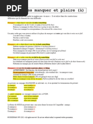 French 221 Les Verbes Manquer Et Plaire Lecon Regles Syntaxe - Conjugaison du verbe plaire :