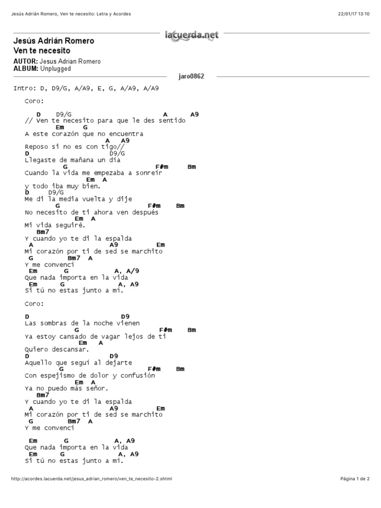 Jesus Adrian Romero Ven Te Necesito Letra Y Acordes - Acordes, letra y tablatura de la cancion romeo y julieta de amango.