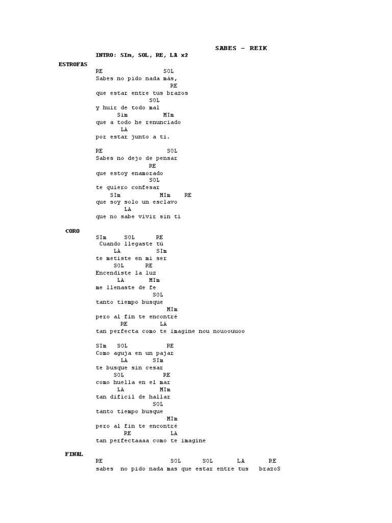 Sabes Reik Letra Y Acordes - C f c sabes no pido nada mas, que estar entre tus brazos. Sabes Reik Letra Y Acordes / G em y huir de todo mal que a todo he renuncuado.