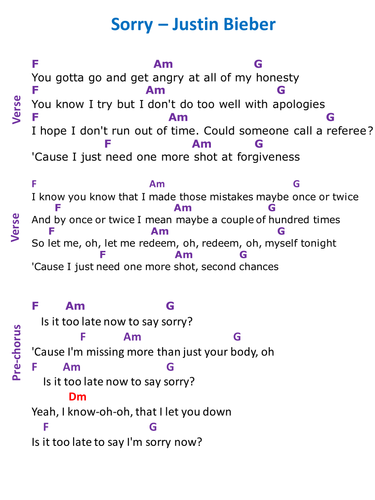 Sorry Lyrics Justin Bieber Chords : 2,853,318 views, added to favorites 61,585 times. Sorry Lyrics Justin Bieber Chords : Julia michaels, justin bieber, justin tranter, michael tucker, sonny moore lyrics powered by www.musixmatch.com.